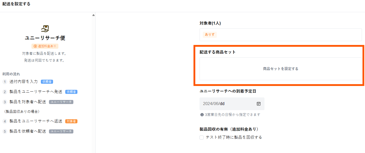 このステップではユニーリサーチ便に合わせた製品準備をしていきます。