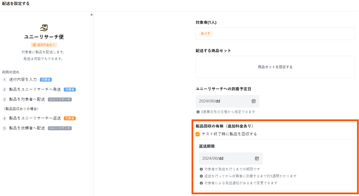 (返送が必要な場合)製品回収の返送期限を選択します。