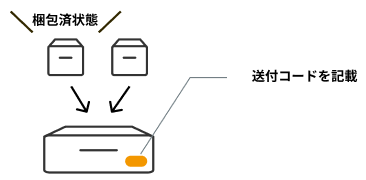 梱包した箱をひとまとめにします。まとめた箱の外側に送付コードを記載してください。