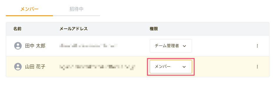 メンバーの招待・権限変更ができるのはチームの管理者のみです。