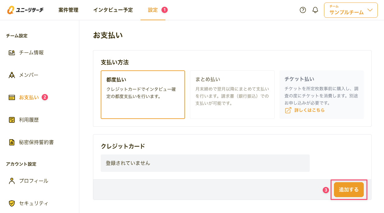 都度払いでのクレジットカードの登録方法です