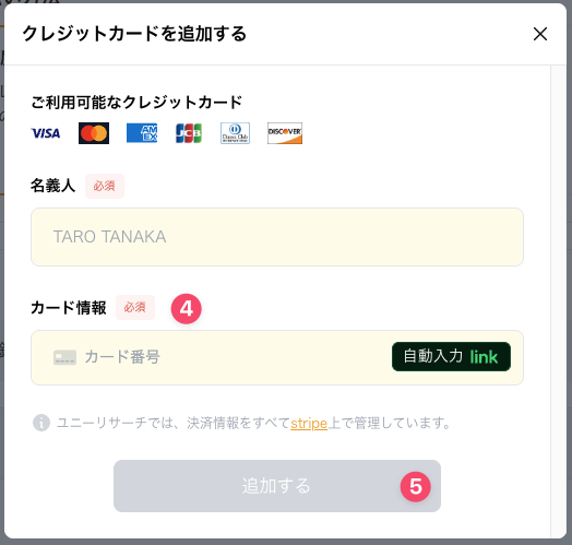 クレジットカードの登録方法