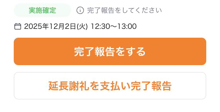 ・時間延長が発生した場合→延長謝礼(※)の支払い完了報告