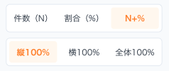件数と割合(n+%):件数と割合をそれぞれ集計し、表の1セルにまとめて表示します。