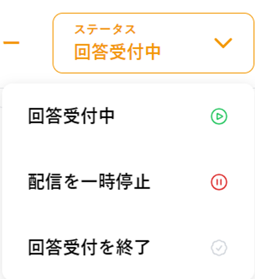 アンケートの配信後に、誤った文言を修正したい場合や、設定の変更を行いたい場合などは、配信の一時停止後、項目の修正が可能です。