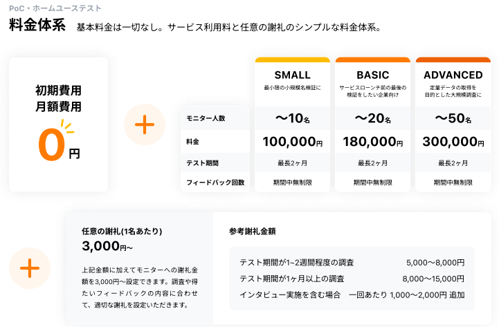 テストが完了した人数に応じてSMALL/BASIC/ADVANCEDのプラン料金が決まります。
