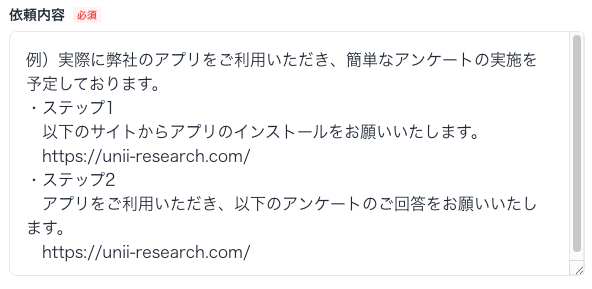 以下の内容を入力することで、対象者への依頼ができます。