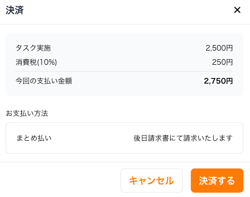 依頼内容の入力を完了すると、決済を行うことができます。
