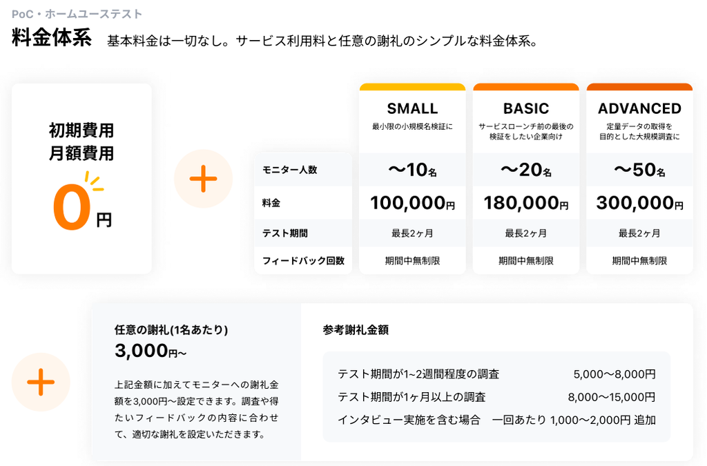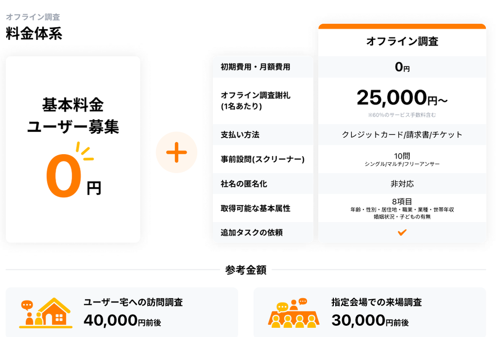 オンラインインタビューの料金体系