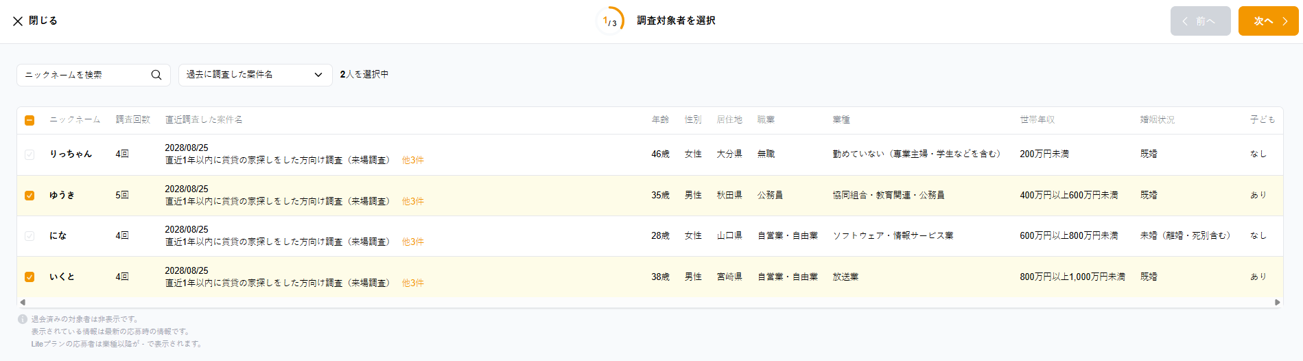 ※退会済みの対象者は非表示になっています。