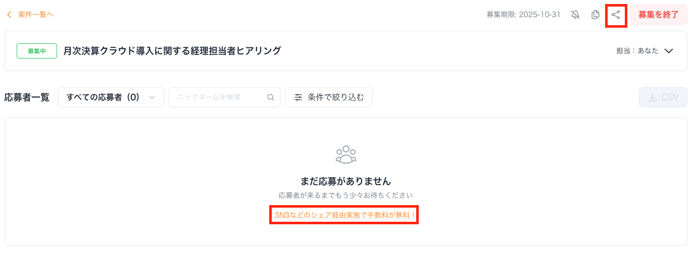 応募が0件のとき