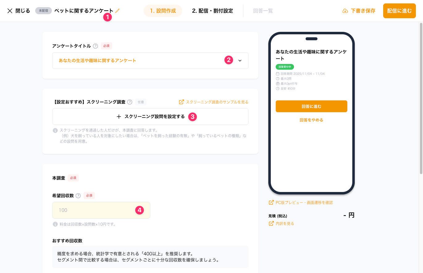 料金は設問数×回収数×10円です。