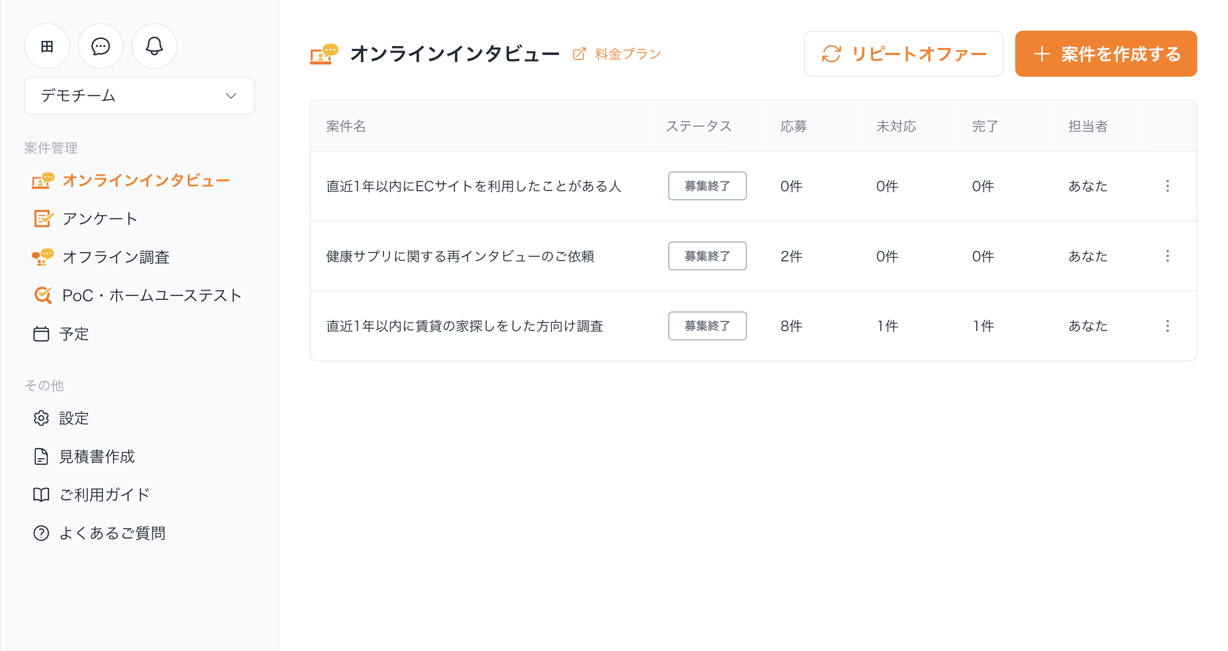 各サービスの案件一覧には左サイドバーからアクセスできるようになりました。