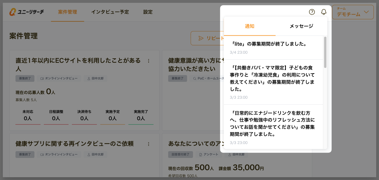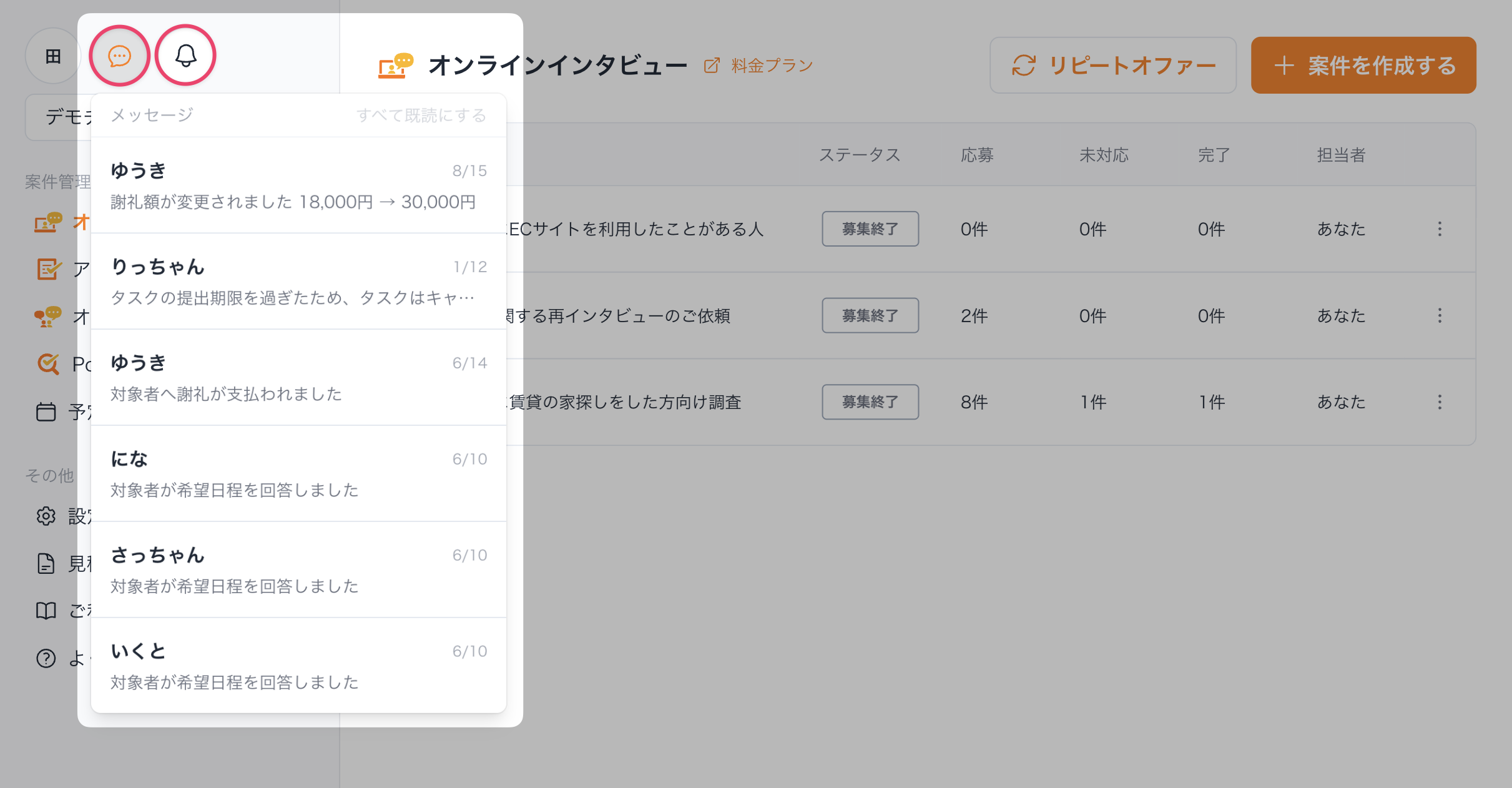 案件のお知らせの通知と協力者様からのメッセージ通知が独立し、メッセージを確認しやすくなりました。